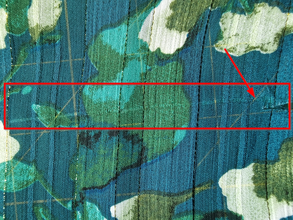 Til að klippa efni þráðrétt sem getur verið gott í sumum tilfellum þá er gott að klippa aðeins inn í efnið og draga 1-3 þræði út úr efninu.